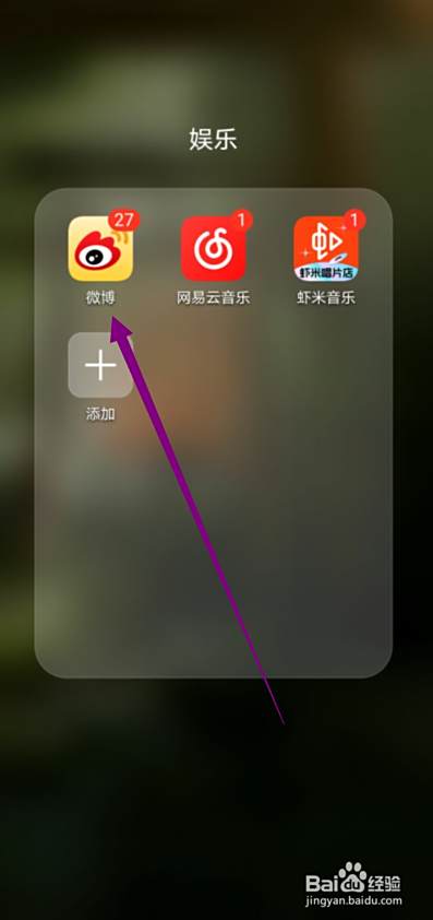 点击打开手机上的“微博”,如图所示。