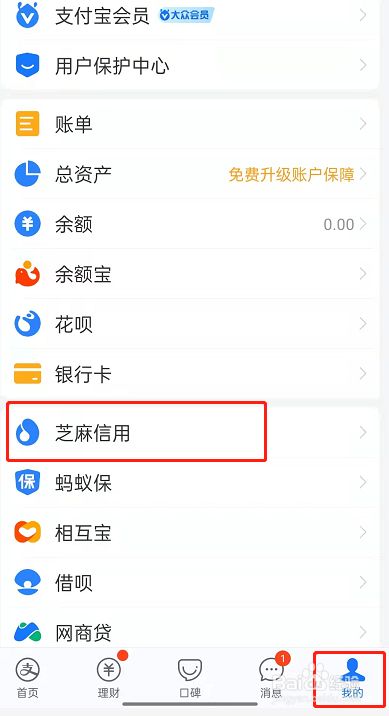 1、打开支付宝应用,点击我的,进入芝麻信用。