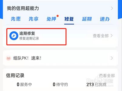 4、点击进入花呗逾期记录修复。