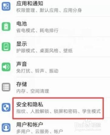 弹出的界面,我们点击安全和隐私;