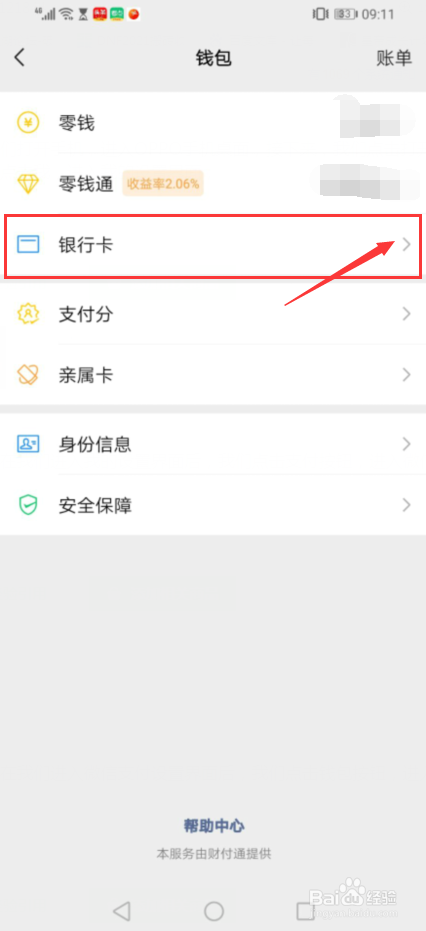 接下来,在我们进入我的钱包界面后,我们点击银行卡按钮,进入银行卡设置界面;