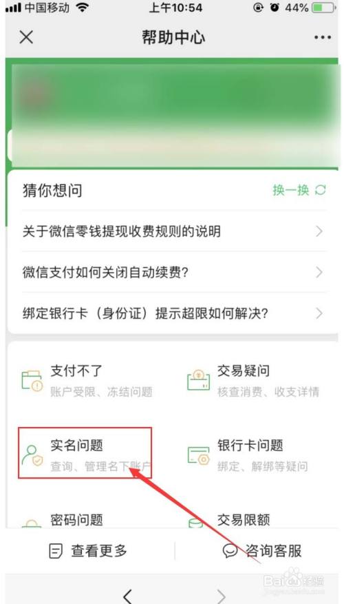 点击“实名问题”,然后点击“查询名下帐户”,如图