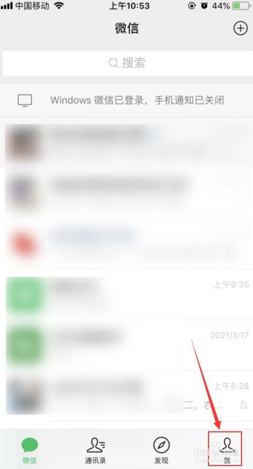 登录微信后,点击右下角“我”,如图