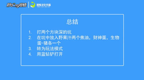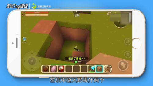 在坑中放入“野果汁”两个,“焦油”、“财神蛋”、“生物蛋-猪”各一个