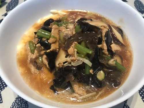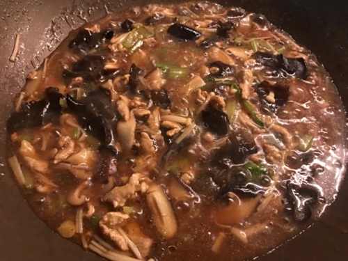 7倒入玉米淀粉水勾芡。煮开2分钟再滴入几滴香油(或玉米油)。