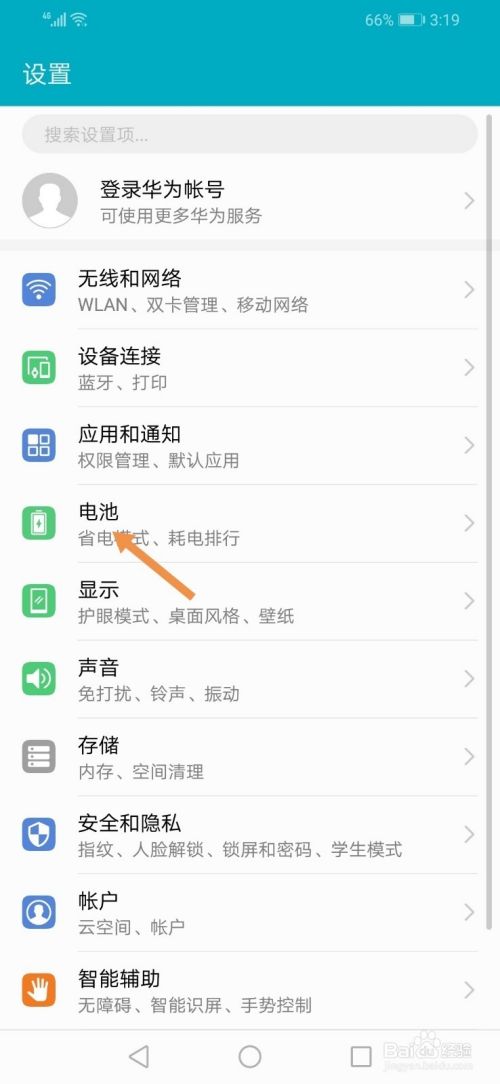 在设置界面,点击电池。