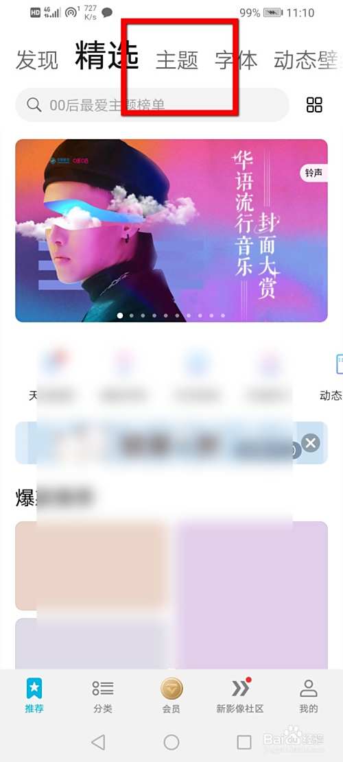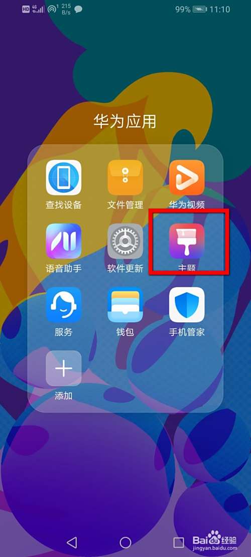 首先打开华为桌面,可以看到没有更换之前的桌面图标,然后点击华为手机中的主题。