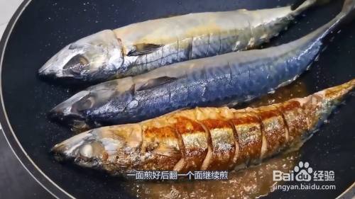 锅中加入适量的油,油热后放入处理好的鲅鱼煎,一面煎好后翻一个面继续煎。