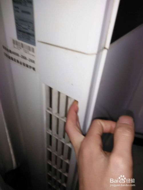已两侧吸风口为着力点,轻轻试着往外拉,使空调盖打开,一定要稳着空调,别用力过猛