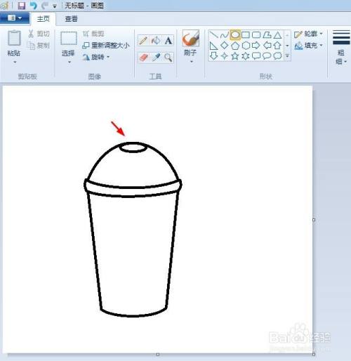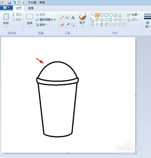 第三步:在画好的奶茶杯上方,画出一个半圆弧形的杯盖。
