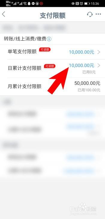 日累计支付限额就是每天转账的最大额度,点击日累计支付限额。