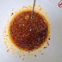 拌料来了,辣椒末,耗油,糖,蒜片,芝麻鸡精,盐,味精,糖,按自己口味添加就行,然后起锅烧油,油热了浇到拌料上。然后在加入芝麻酱,我喜欢酸的放了些醋。