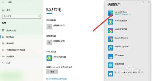 在弹出的菜单栏选择Microsoft Edge,这样操作后Microsoft Edge浏览器就不会再被360浏览器修改了。