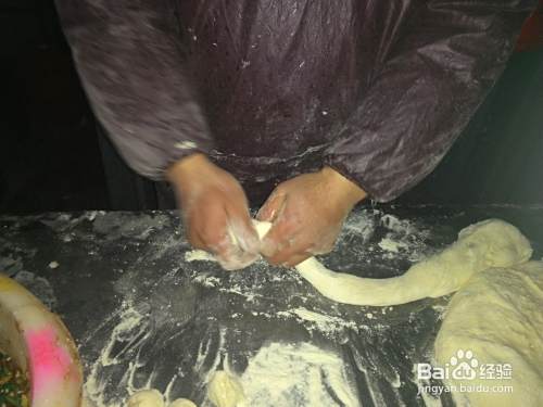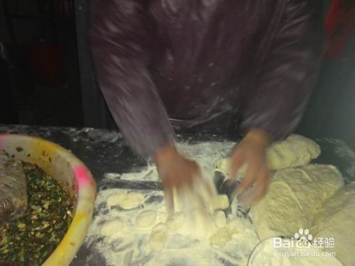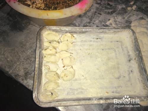 面团分割成30g-35g的剂子,擀开,不要太薄,大约0.5cm厚;