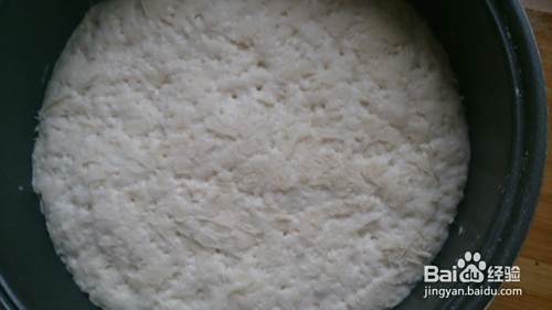 在将面、糖、泡打粉略微混合后,加入酵母水,搅匀,加入沸水,冷水,揉成粗糙面的面团,盖保鲜膜静置5分钟;