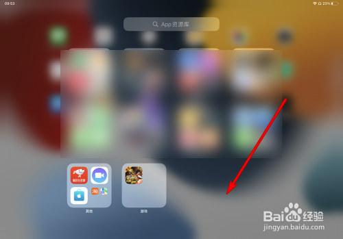 在ipad主屏下面滑动,可以打开资源库界面,选择使用的应用。那么,ipaddock栏上滑退出。