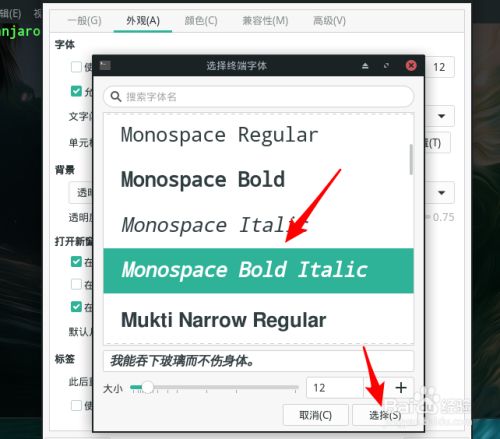 单击选中自己喜欢的字体,点【选择】完成终端字体设置。