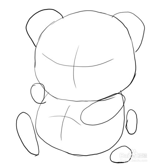 用铅笔在白纸上画出熊猫的身体轮廓。