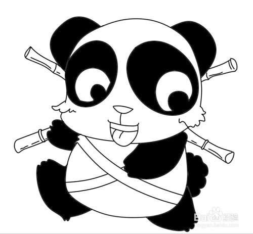 这次来画一个卡通版的熊猫,熊猫最喜爱的是竹子,背着竹子去到哪里吃到哪里,真是个懒猫。