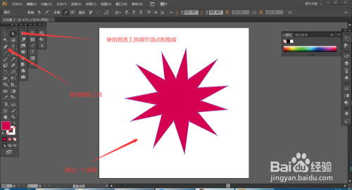 然后使用钢笔工具,画一个形形状的图案,使用直选工具调节好角度。