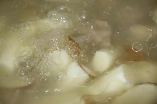 2龙骨和冷水一起如果,大火,烧开后即可捞起沥干水