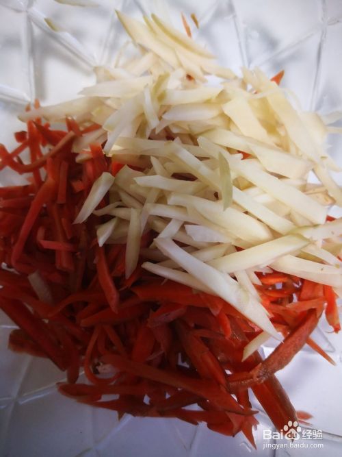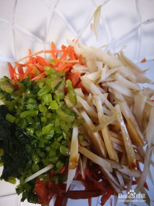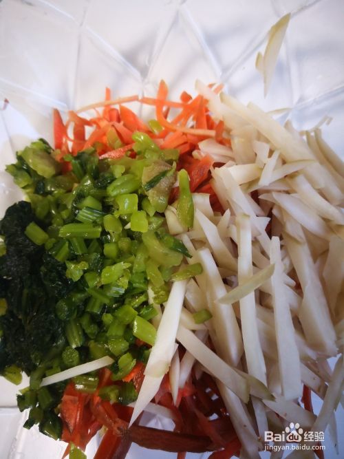 玉根头切丝放入盆中