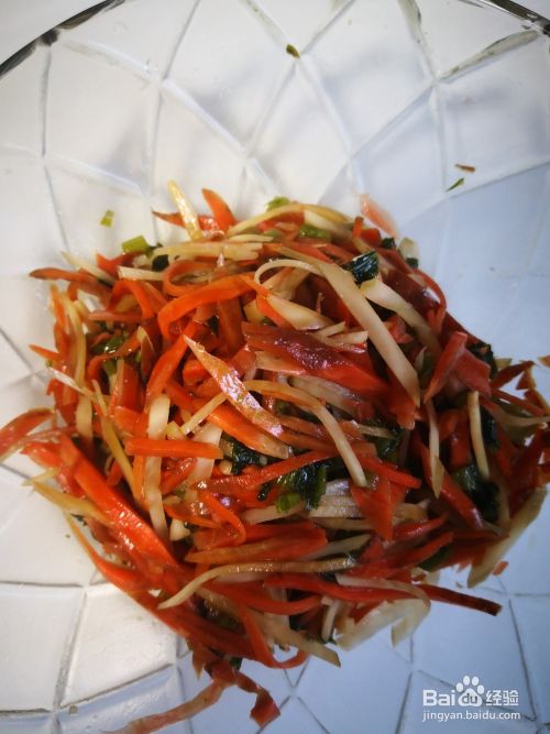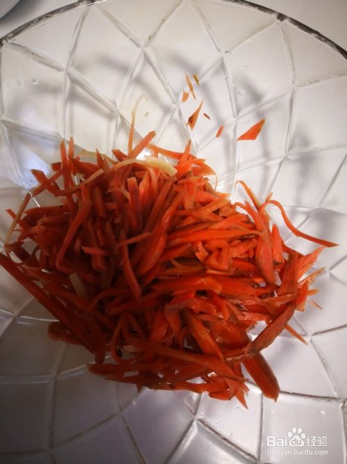 胡萝卜切丝放入盆中
