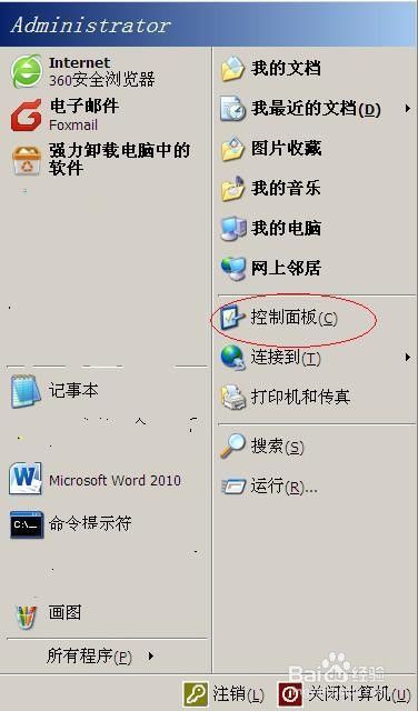 在桌面左下角的开始菜单列表中选择“控制面板”功能,如下图所示。