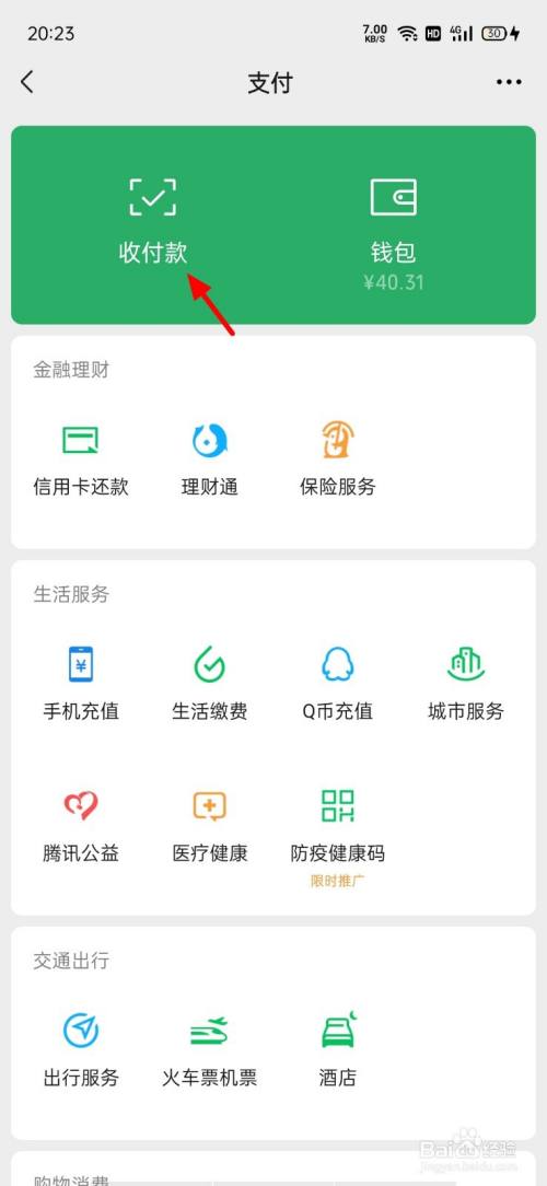 在服务界面,点击收付款。
