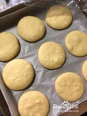 剩下的面也不要浪费,重新整形擀薄压成圆片。放进烤盘中,烤盘盖上保鲜膜,放到烤箱按发酵(我36度发了1个小时)烤箱没有发酵功能的可以放一碗热水在烤箱里。 发酵前 发酵后
