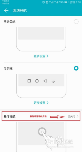 这里是系统导航的三个项目,我们可以看到第三个是悬浮导航,右侧按钮显示关闭状态。