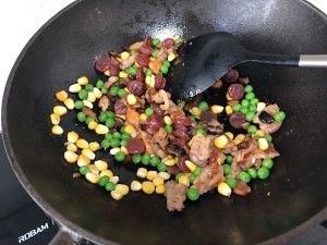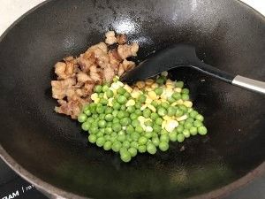 加入青豆玉米翻炒几秒