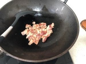 放入五花肉煸炒出油
