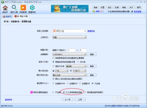 在完成抓取商品后,选择上传到淘宝店铺,然后我们可以选择不上传商品描述,这样就可以节约大量的图片空间了。