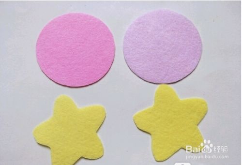 再用不织布剪出俩个圆形,黄色的不织布剪出俩个星星