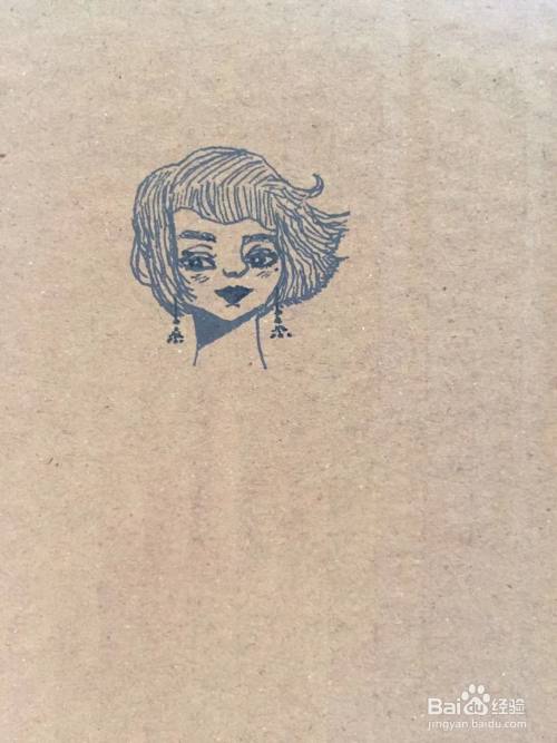 首先在纸上,用黑色勾线笔画出露莎的头部轮廓。我们在其头顶画出发型,用笔画出发丝纹理。我们画出露莎的面部五官,用笔画出耳饰。