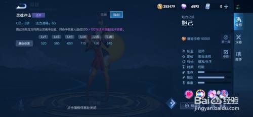 一技能:妲己挥出灵魂冲击波,对命中的敌人造成法术伤害