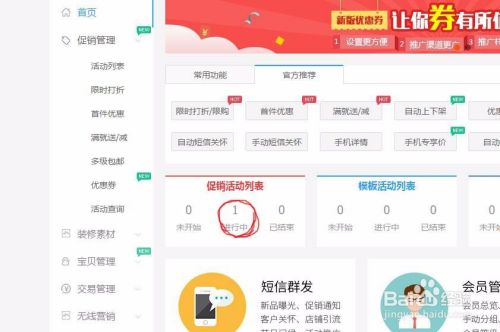 在首页中找到营销中心,点击向上箭头张开后,找到促销管理。