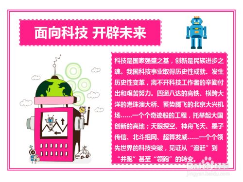第二步,“面向科技 开辟未来”画报的标题右边画个机器人。