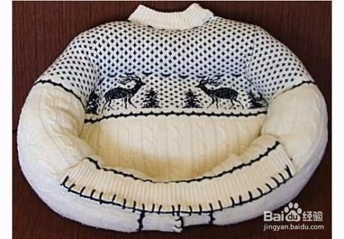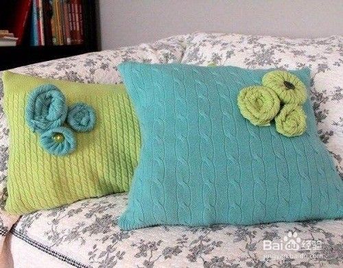 首先我们可以利用毛衣的身子做一个软软的抱枕。将毛衣在桌子上铺平,从袖子下面开始将整个的身子剪下来。然后将两头缝合,塞入填充棉。再在外面缝上几朵小饰物,一个美美的抱枕就诞生了。