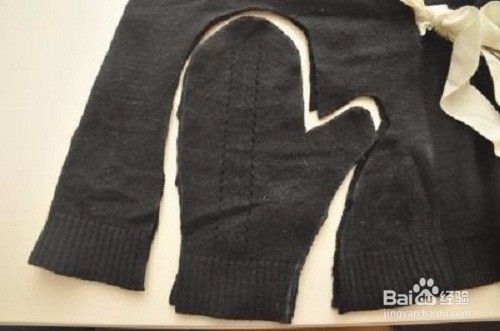 剪完帽子的毛衣还剩下很多呢,也不要浪费了,我们可以用剩下的毛衣做一个毛线手套。将手铺在毛衣上,将手的形状勾画在毛衣上,然后沿着线剪下来,再缝合,毛线手套就做好了。
