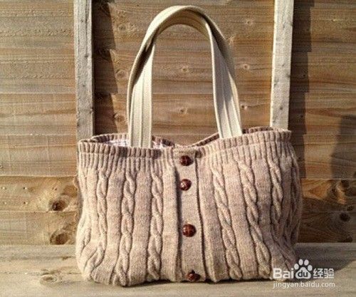 还可以利用旧毛衣做一个美美的包哦。从袖子下面的地方开始将毛衣的身子剪下来,然后将底面缝合,上面的不用缝合。再健袋子缝在上面的两端,装上拉链,一个毛线包就完成了,背出去也很赚回头率的呀。