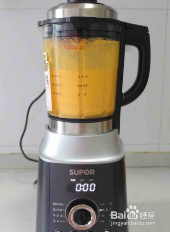 安装好机器,选择“果蔬汁”功能,按下开始键,时间为1分钟