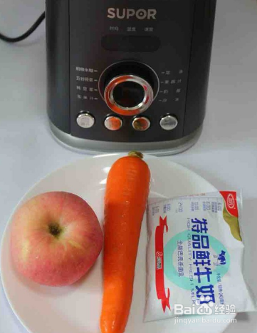 以前在同事家喝过她用破壁机打的苹果胡萝卜牛奶,味道真是棒极了,回来曾试过用料理机打,完全不是一个概念,口感很差,喝着都是渣,也试过用渣汁分离的原汁机打,分离出来的渣得另外处理,包饺子或者煎饼的,分离出来的汁加牛奶才能做出一杯心爱的苹果胡萝卜牛奶,后续清洗机器也还挺麻烦的,所以拥有一台强大的破壁机是我一直以来的心愿,现在美食杰和苏泊尔帮我实现了这个愿望,真心觉得自己此刻无比的幸运,满满都是沉甸甸的幸福感,非常感恩! 苏泊尔极养破壁料理机是一款养生神器,可以实现的美食可谓五花八门,以后可以慢慢来做,收到机子咱们还是先来一杯简单健康的苹果胡萝卜牛奶吧。 胡萝卜能提供丰富的维A,而苹果中的维生素C是心血管的保护神,胶质和矿物质可以降低胆固醇,特有的香气可以缓解压力过大造成的不良情绪,还有提神醒脑之功。苹果可以养颜除斑,使肌肤润泽有弹性。苹果胡萝卜牛奶不仅味道香甜可口,更富含胡萝卜素、柠檬酸、苹果酸、钙、铁、果胶等多种营养素,尤其是身体容易疲劳的人,更应经常饮用。