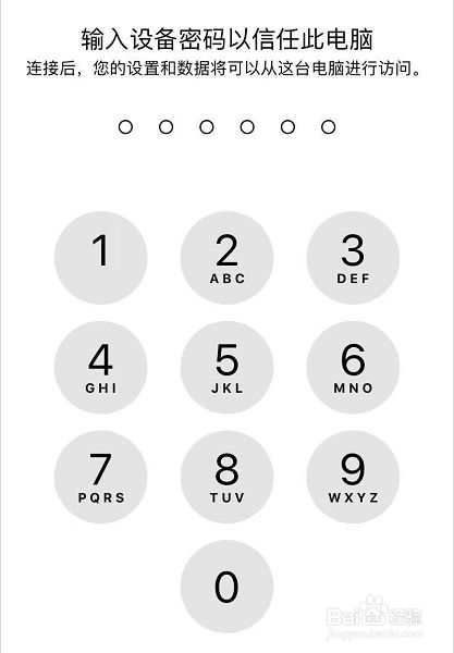 输入iPhone的锁屏密码,确认授权信任此电脑。