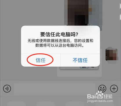 1、用数据线连接iPhone和电脑,就会弹出信任选项;