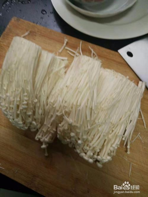 切除金针菇底部留下最嫩的部分,用清水洗净。