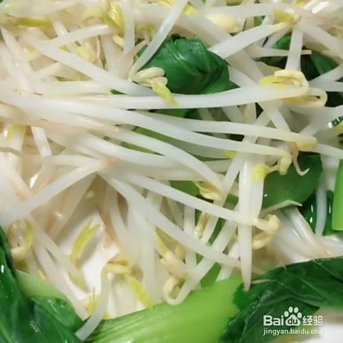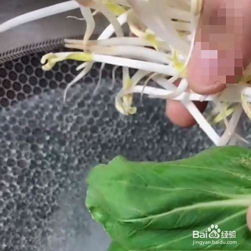 准备小青菜和绿豆芽放入开水锅。