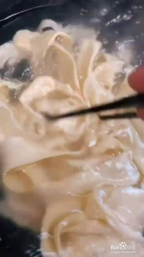 开水下锅,用筷子轻轻拨散,防止粘连,煮三分钟以后,下青菜煮熟,捞出来过凉水,口感更加筋道。