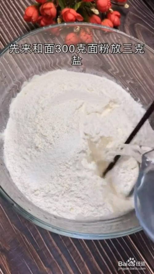 三百克面粉,放三克盐,用一百七十毫升的凉水和面,先搅成面絮,再揉成一个光滑的面团。